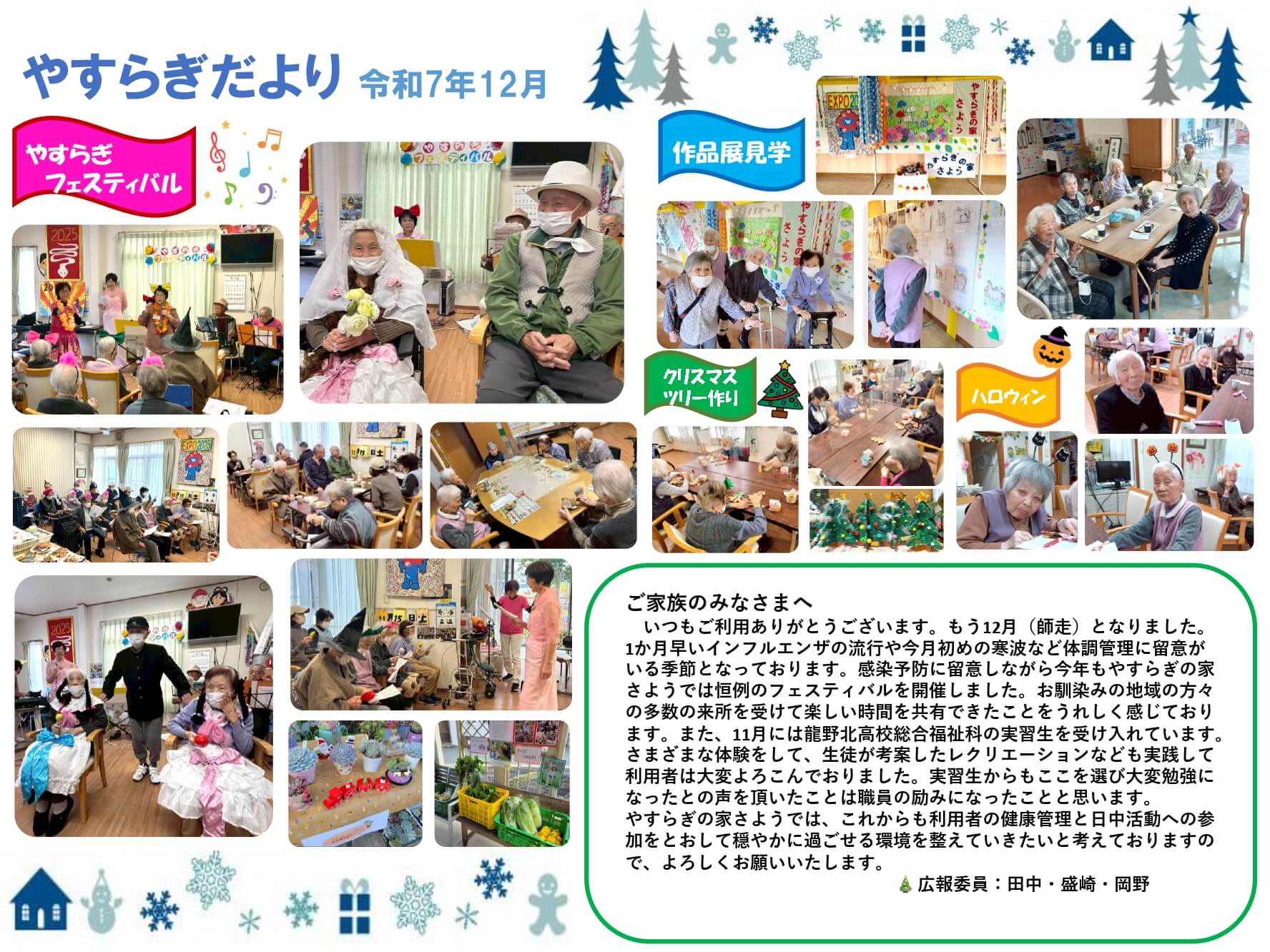 やすらぎの家さようの広報誌「やすらぎだより」の2025年12月号が完成しました!