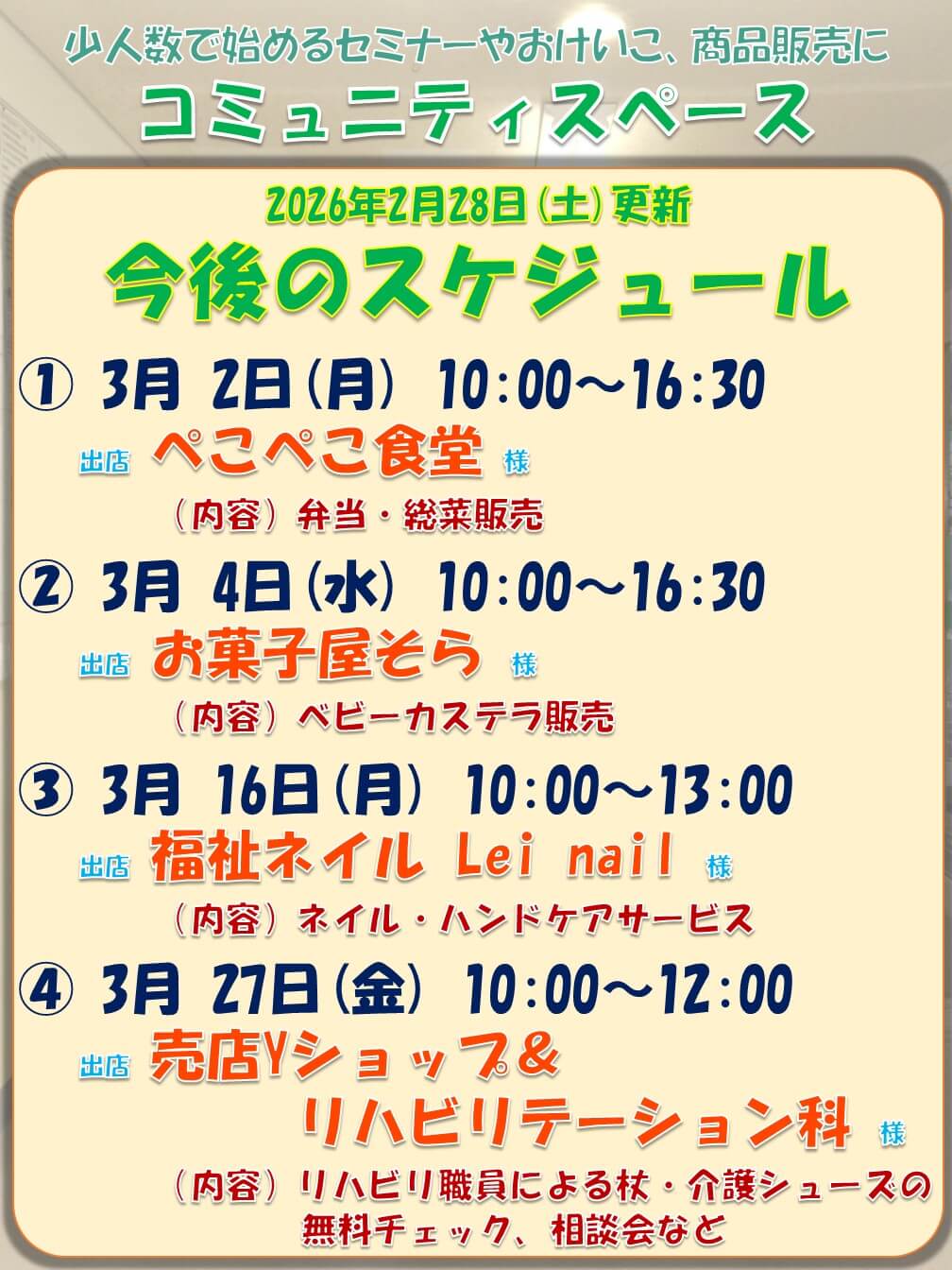 ・貸 出:長机2台、丸椅子4脚、看板立て