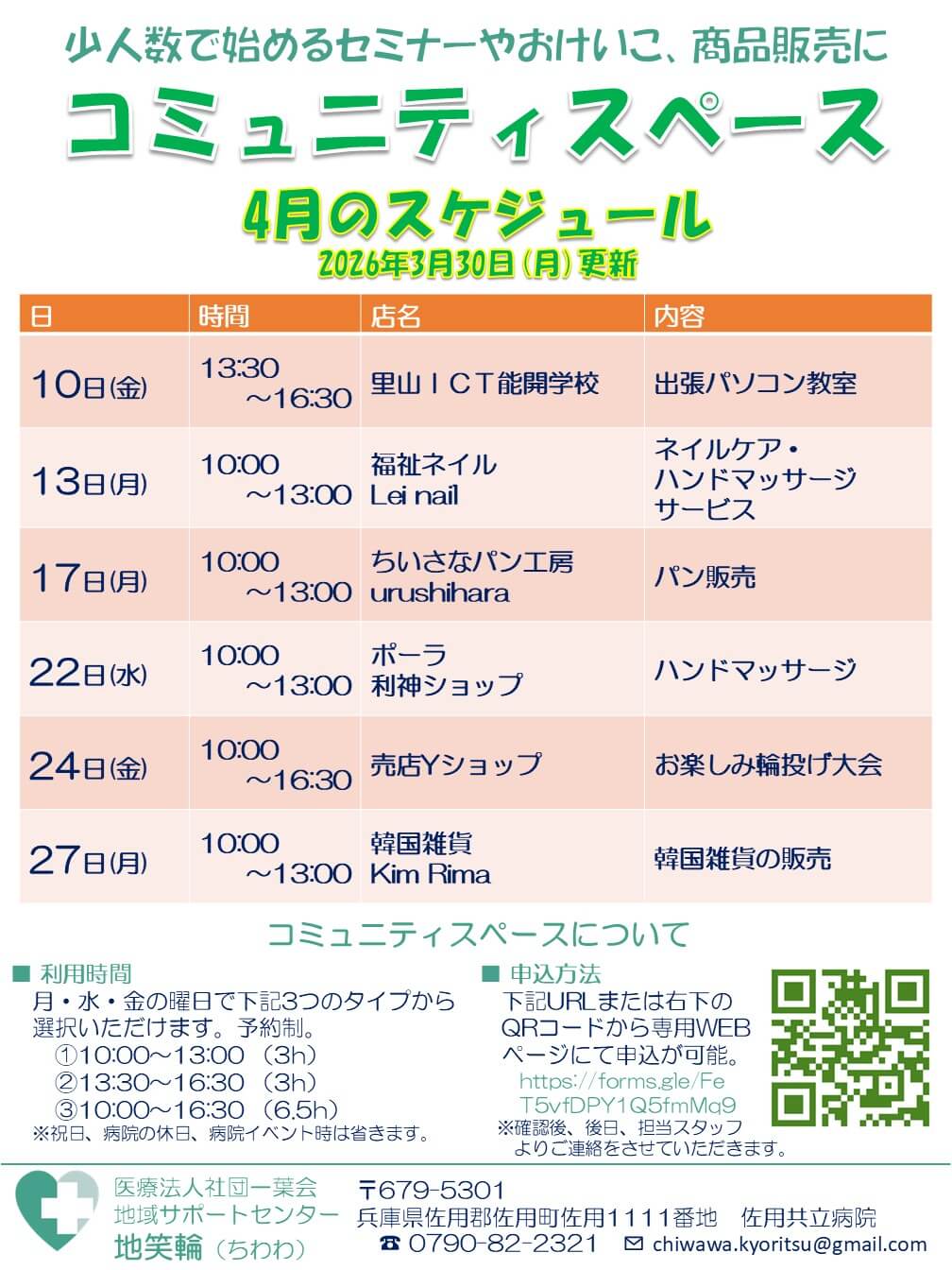 佐用共立病院では、1階入り口横スペースを活用したコミュニティスペースを設置しています。